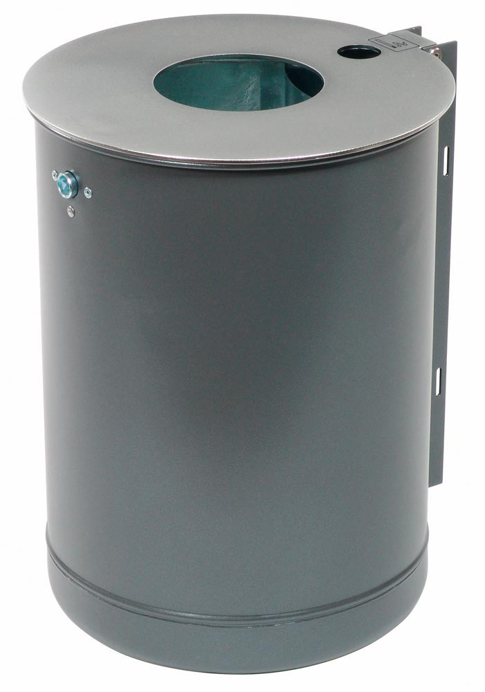 Abfallbehälter mit Ascher 50 l, m. Edelst.-Deckelscheibe DxH 380x515 mm, angeschw. U-Profilschiene zum Montage, Einsatzbehälter, RAL 7016 EP524123
