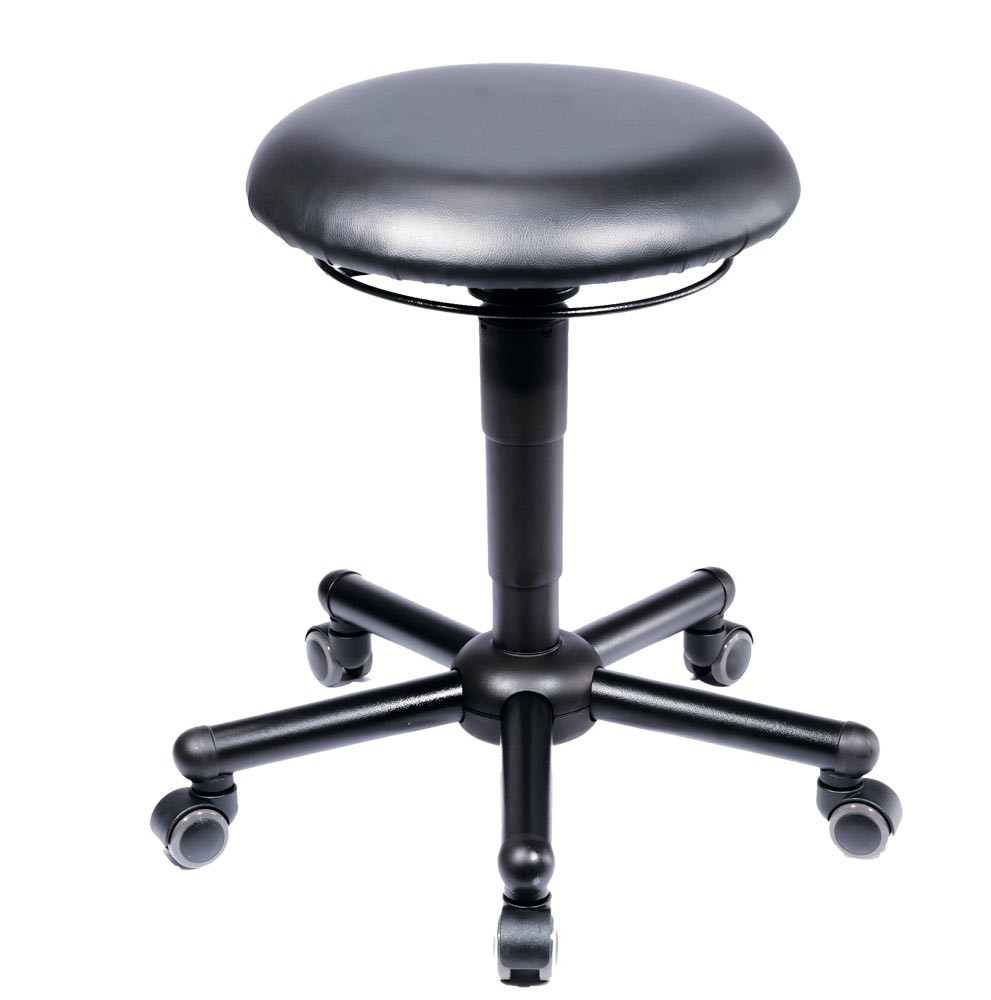 Arbeitshocker mit Gasfederhöhenverstellung, mit Rollen, Sitzfläche mit Kunstleder schwarz, Sitz Höhe: 465-595 mm, Belastbarkeit bis 250 kg