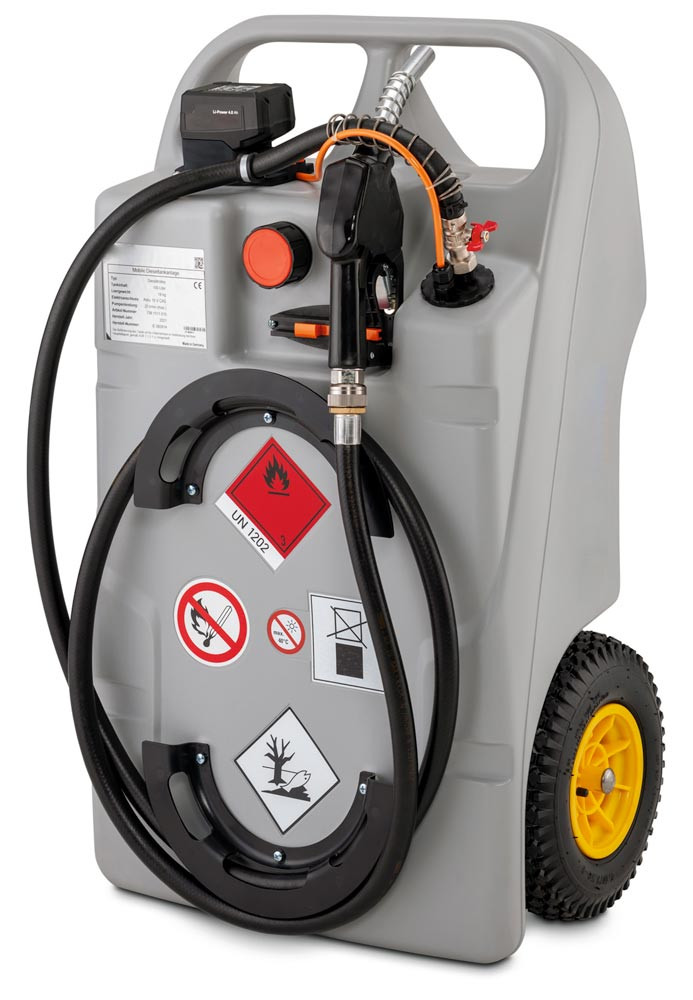 Dieseltrolley, Volumen 100 Liter, mit Elektropumpe und Automatik-Zapfpistole, BxTxH 590x1000x430 mm, Gewicht 20 kg EP555147