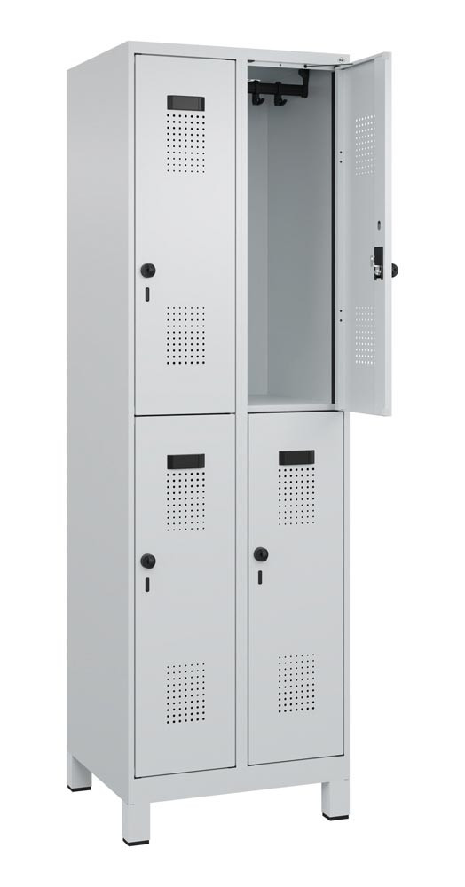 Fächerschrank, Stahl, doppelstöckig, 1x2 Fächer, Abt.B 400 mm, Füße, Drehriegel, BxTxH 400x500x1950 mm, RAL 7035 EP560190