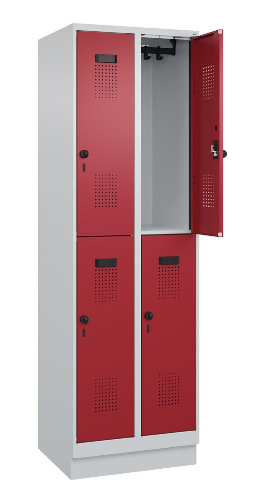 Fächerschrank, Stahl, doppelstöckig, 2x2 Fächer, Abt.B 300 mm, Sockel, Drehriegel, BxTxH 600x500x1950 mm, Farbwahl