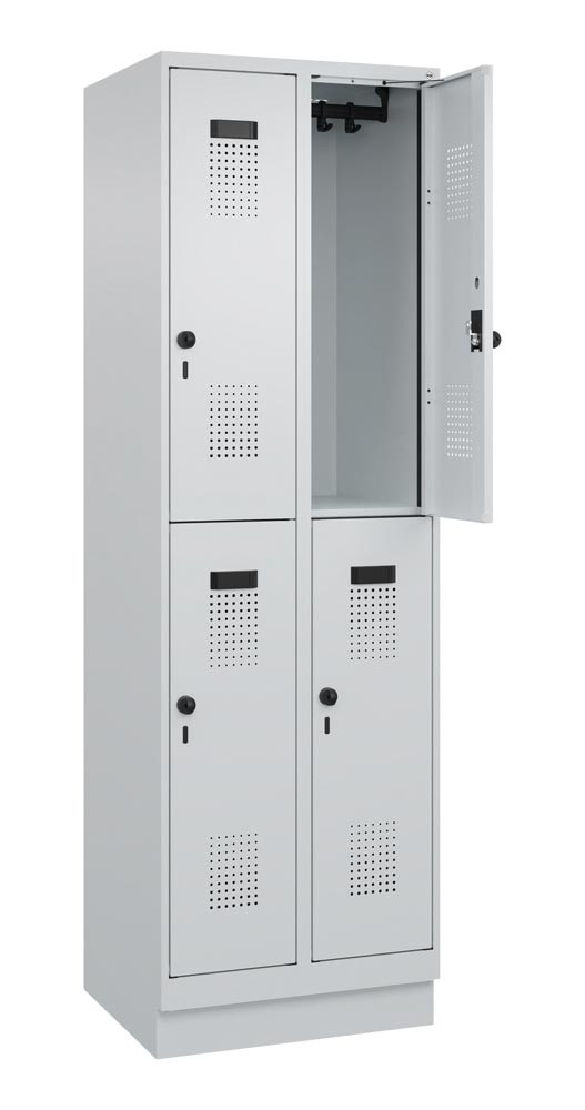 Fächerschrank, Stahl, doppelstöckig, 1x2 Fächer, Abt.B 300 mm, Sockel, Drehriegel, BxTxH 300x500x1950 mm, Farbwahl EP560210