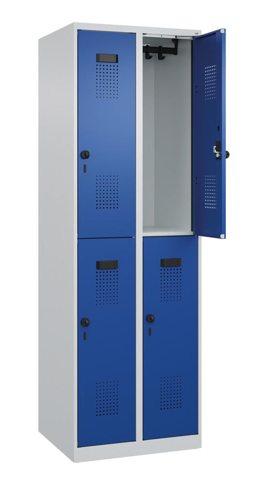 Fächerschrank, Stahl, doppelstöckig, 1x2 Fächer, Abt.B 400 mm, bodenstehend, Drehriegel, BxTxH 400x500x1850 mm, RAL 7035/5010 EP560170