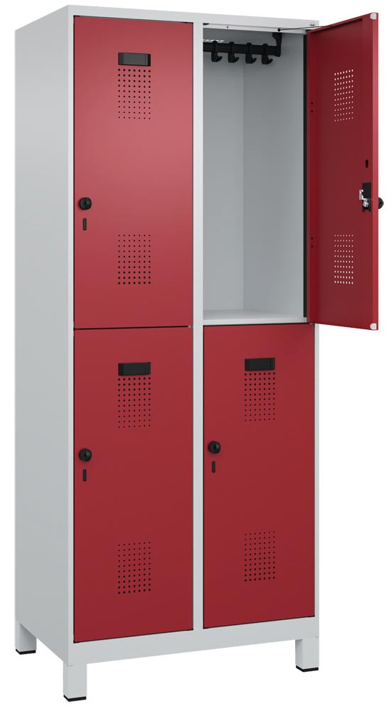 Fächerschrank, Stahl, doppelstöckig, 2x2 Fächer, Abt.B 400 mm, Füße, Drehriegel, BxTxH 800x500x1950 mm, Farbwahl