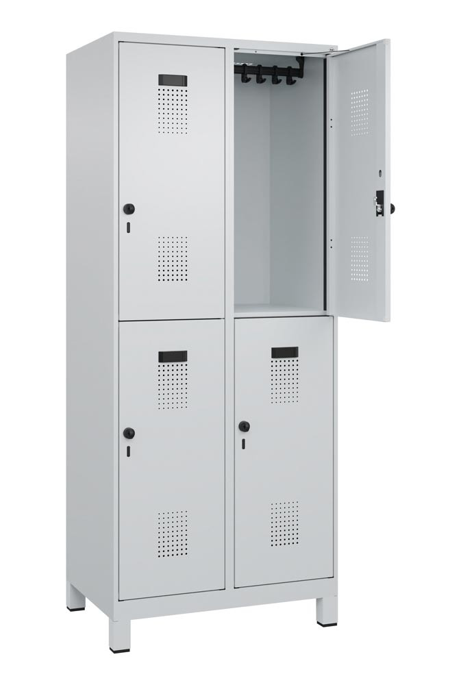 Fächerschrank, Stahl, doppelstöckig, 1x2 Fächer, Abt.B 300 mm, Füße, Drehriegel, BxTxH 300x500x1950 mm, RAL 7035 EP560187