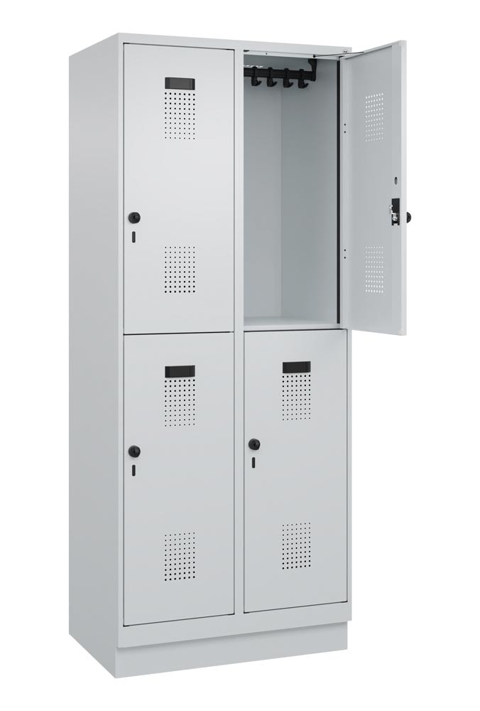 Fächerschrank, Stahl, doppelstöckig, 1x2 Fächer, Abt.B 300 mm, Sockel, Drehriegel, BxTxH 300x500x1950 mm, RAL 7035 EP560208