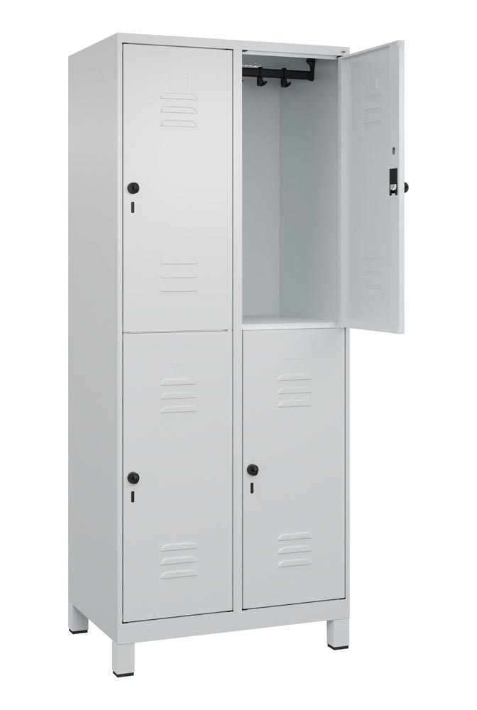 Fächerschrank, doppelstöckig, BxTxH 800x500x1950 mm, 2x2 Fächer, Abt.B 400 mm, Drehriegel, Füße, RAL 7035