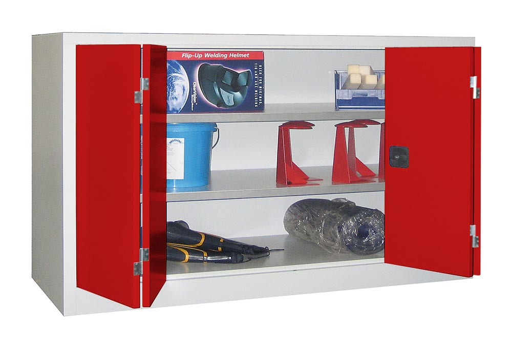 Falttürenschrank, Vollblechtüren, 2 verzinkte Böden, BxTxH 1200x400x1000 mm, RAL 7035/3000 EP528410
