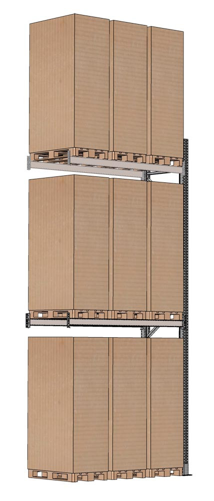 ∙ Feuerverzinkte Oberflächenbeschichtung ∙ Für die Lagerung von Europaletten mit einer Palettenhöhe von max. 2530 mm ∙ Palettengewicht bis 1000 kg ∙ Warmgewalzte IPE-Holme mit 5 Agaffenhaken ∙ Schraubenanker inkl. Folienpatrone ∙ Mindestanforderung: 3 Felder mit mindestens je 2 Holmebenen