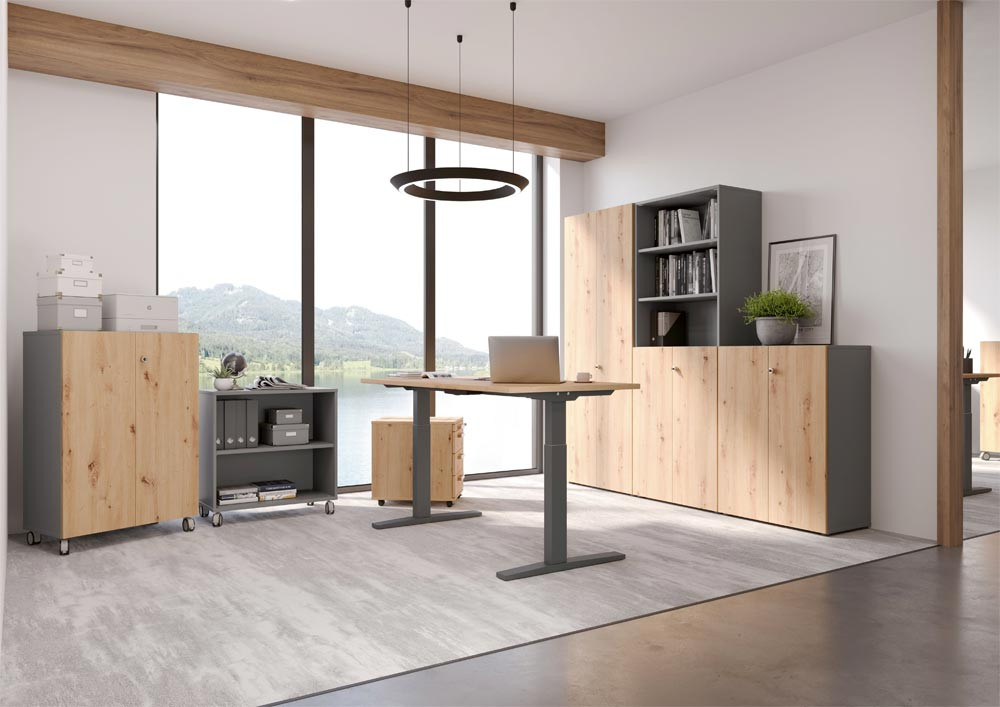 Flügeltürenschrank, BxTxH 800x420x1100 mm, 3 OH, 2 Böden, graphit/asteiche