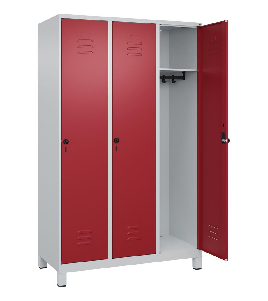 Garderobenschrank, BxTxH 1200x500x1950 mm, 3 Abteile, B 400 mm, Füße, Drehriegel, Farbwahl