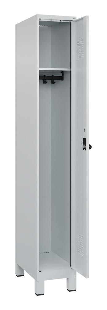 Garderobenschrank, Füße, 1 Abteil, Abt.B 300 mm, Drehriegel, BxTxH 300x500x1950 mm, RAL 7035 EP559672