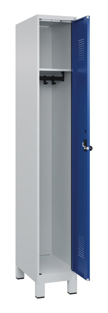 Garderobenschrank, Füße, 1 Abteil, Abt.B 300 mm, Drehriegel, BxTxH 300x500x1950 mm, RAL 7035/5010 EP559673
