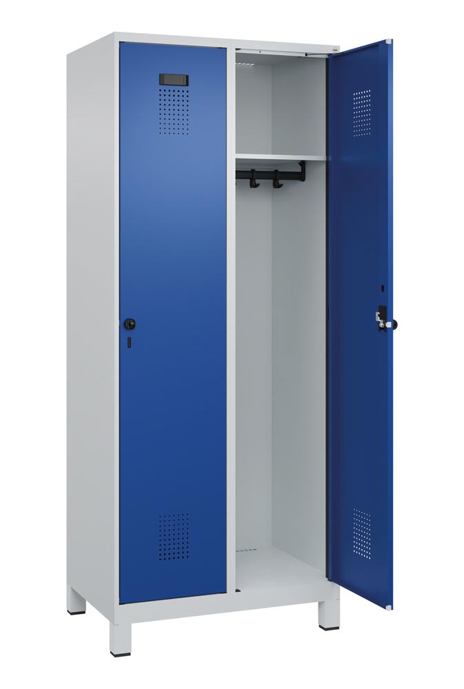 Garderobenschrank, Füße, 1 Abteil, Abt.B 300 mm, Drehriegel, BxTxH 300x500x1950 mm, RAL 7035/5010 EP559673