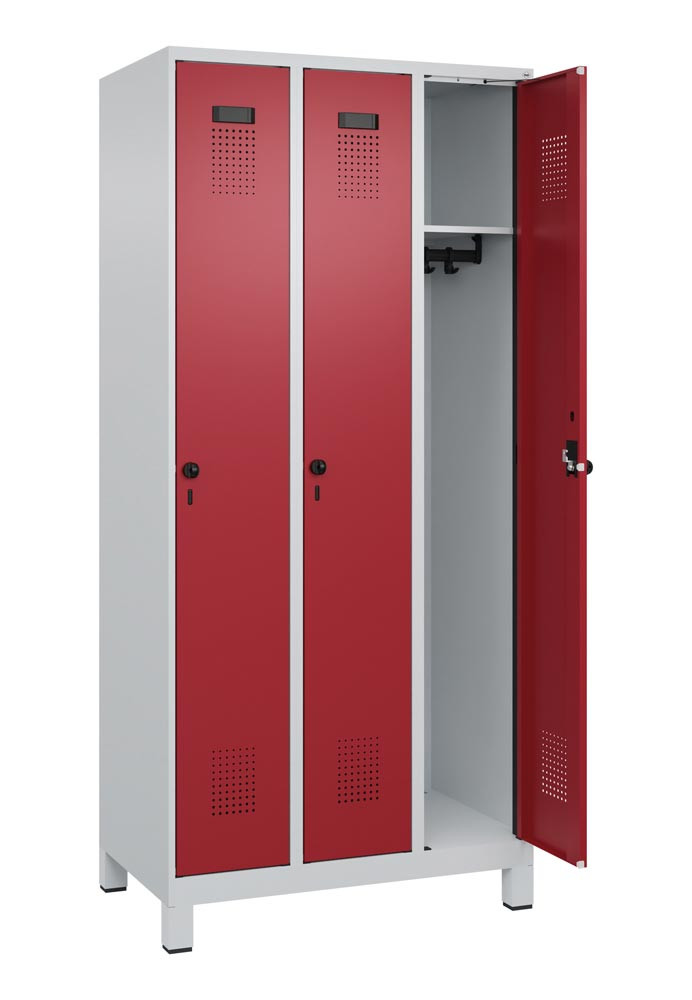 Garderobenschrank, Füße, 3 Abteile, Abt.B 300 mm, Drehriegel, BxTxH 900x500x1950 mm, Farbwahl