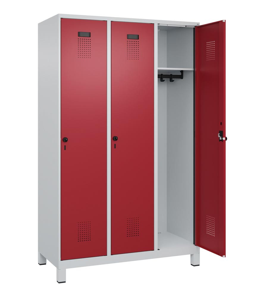 Garderobenschrank, Füße, 3 Abteile, Abt.B 400 mm, Drehriegel, BxTxH 1200x500x1950 mm, Farbwahl