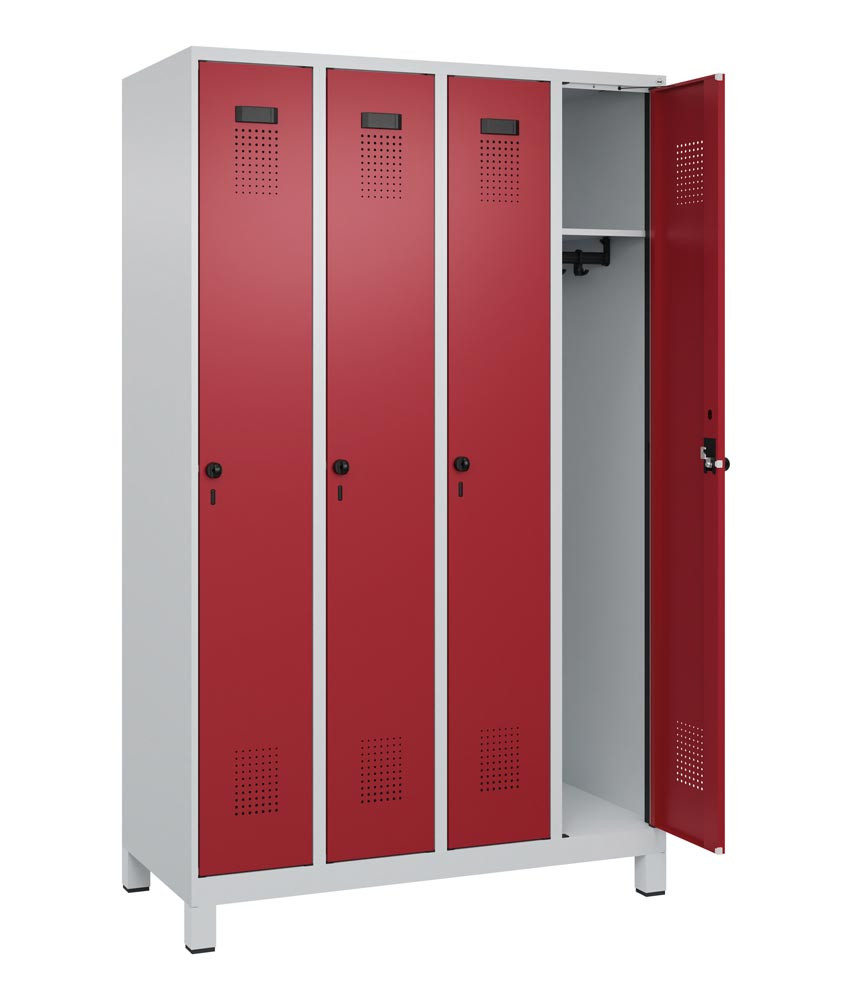 Garderobenschrank, Füße, 4 Abteile, Abt.B 300 mm, Drehriegel, BxTxH 1200x500x1950 mm, Farbwahl