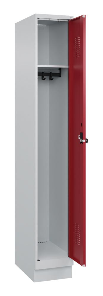 Garderobenschrank, Sockel, 1 Abteil, Abt.B 300 mm, Drehriegel, BxTxH 300x500x1950 mm, Farbwahl