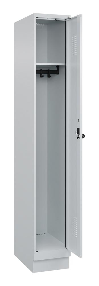 Garderobenschrank, Sockel, 1 Abteil, Abt.B 300 mm, Drehriegel, BxTxH 300x500x1950 mm, Farbwahl EP559695