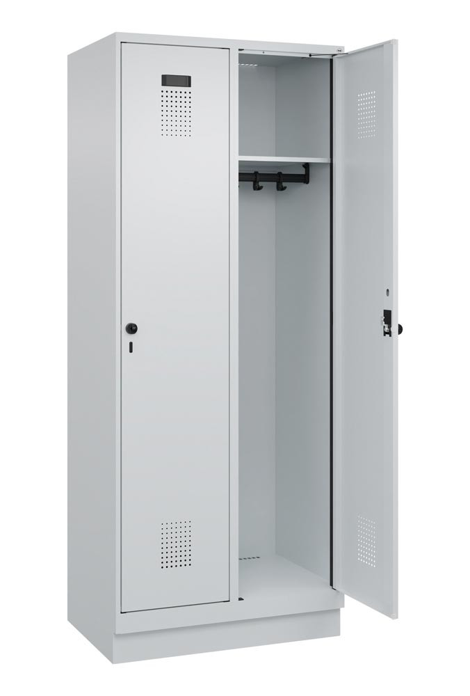 Garderobenschrank, Sockel, 2 Abteile, Abt.B 400 mm, Drehriegel, BxTxH 800x500x1950 mm, RAL 7035