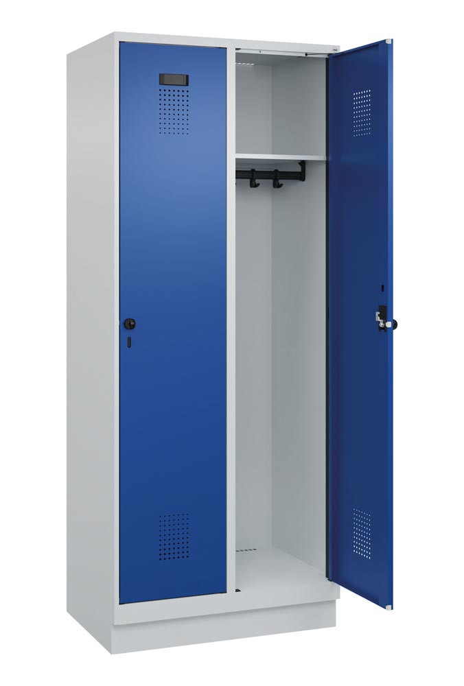 Garderobenschrank, Sockel, 2 Abteile, Abt.B 400 mm, Drehriegel, BxTxH 800x500x1950 mm, RAL 7035/5010