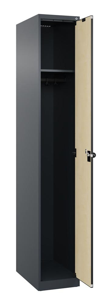 Garderobenschrank, bodenstehend, 1 Abt., Abt.B 300 mm, BxTxH 300x500x1850 mm, HPL-Dekorfront, RAL 7016/Dekor Ahorn EP561836