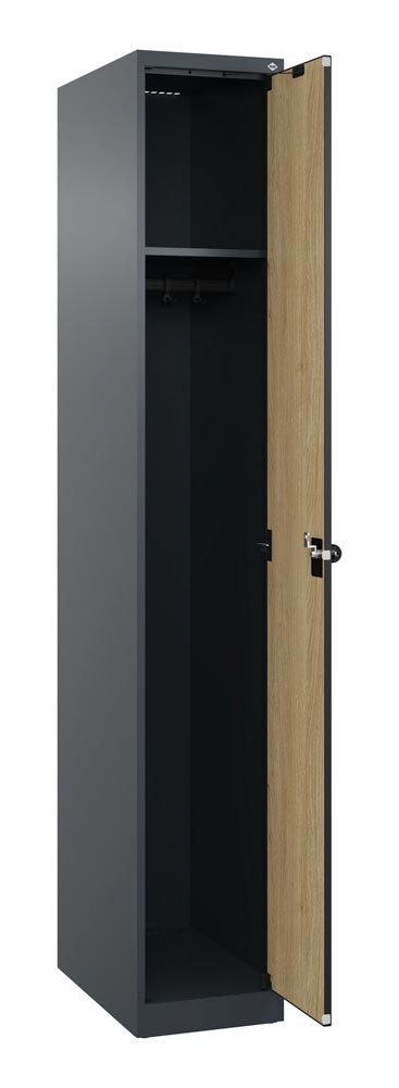 Garderobenschrank, bodenstehend, 1 Abt., Abt.B 300 mm, BxTxH 300x500x1850 mm, HPL-Dekorfront, RAL 7016/Dekor Sen-Esche EP561837