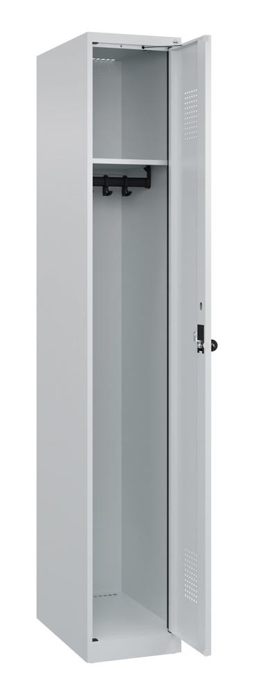 Garderobenschrank, bodenstehend ,1 Abteil, Abt. B 300 mm, Drehriegel, BxTxH 300x500x1850 mm, RAL 7035 EP559651