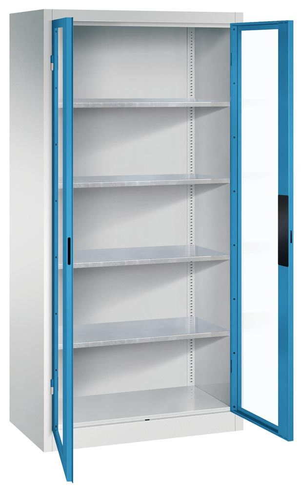Großraum-Werkzeugschrank mit Sichtfenstertüren, 4 Verstellböden, BxTxH 930x600x1950 mm, RAL 7035/5010 EP533481