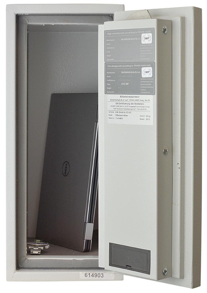 Laptoptresor, Sicherheitsstufe A + S1, LFS30P, BxTxH 200x383x470 mm, Volumen 21 l, RAL 7035 lichtgrau EP551219