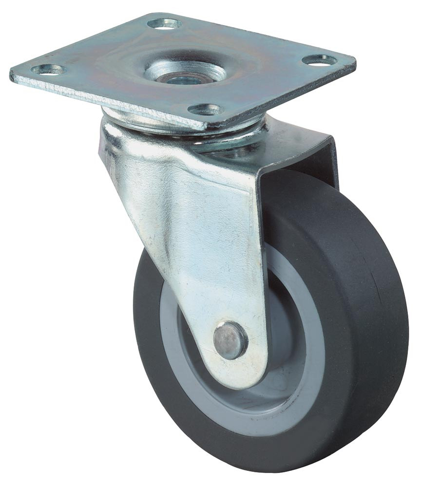 Lenkrolle, Gummi, schwarz, Durchm. 50 mm, Traglast 40 kg, Anschraubplatte, für harte Böden, VE 8 Stück EP529262