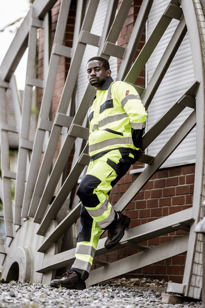 Nach EN ISO 20471, Klasse 1 (Gr. 42-50) bzw. Klasse 2 (Gr. 52-68) und EN ISO 13688 ∙ Aus 60% Baumwolle/40% Polyester, ca. 280 g/m2 ∙ Hoher Tragekomfort dank leichtem und atmungs-