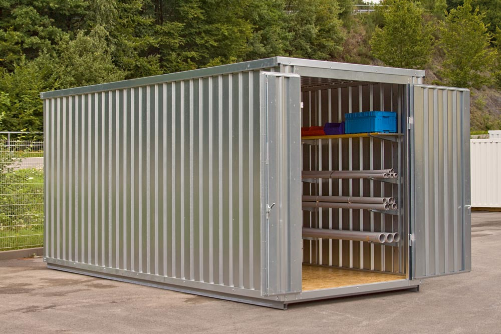 Materialcontainer XXL, montiert, verzinkt, BxTxH mm auß/inn 4050/3956x2540/2355x2600/2365, mit Boden und Flügeltür in 2,54 Meter Seite EP526246