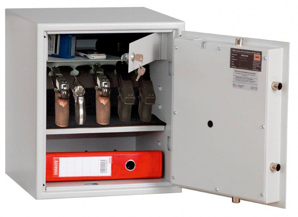 Möbeleinsatztresor, Sicherheitsstufe B, BxTxH 395x380x455 mm, Volumen 38 l, Innentresor, Waffenhalter, RAL 7035 lichtgrau