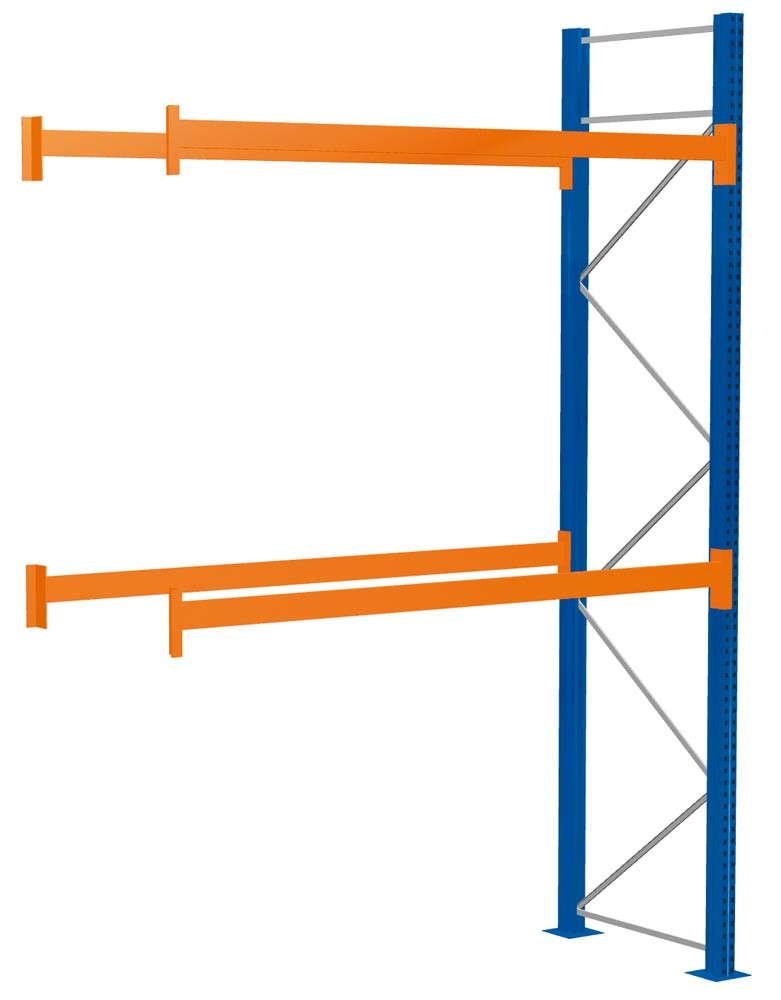 Palettenregal, Anbaufeld, BxTxH 2786x2200x5000 mm, 3 Lagerebenen, Fachlast 1500 kg, Feldlast 4582 kg, Rahmen blau, Holme reinorange EP539883