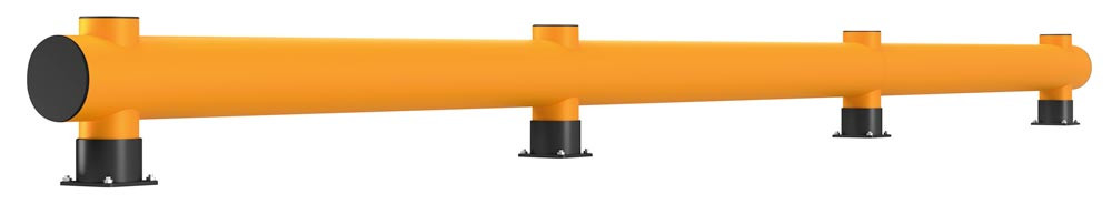 Rammschutzbarriere, Einzelplanke, HDPE, Länge 10000 mm, Höhe 390 mm, Pollerdurchm. 140 mm, Verbindungsrohrdurchm. 200 mm, Farbe gelb