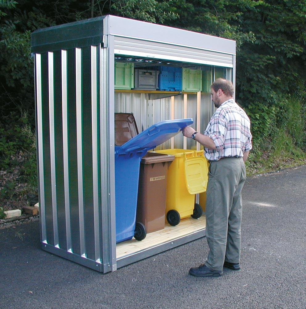 ∙ Als Materiallager und zur Mülltonnenunterbringung (geeignet für 3 Stück 120/240 l Mülltonnen) ∙ Platzsparend durch Rollladen anstelle Türen ∙ Vielfältiges Zubehör ∙ Optionales Elektroinstallationspaket für Beleuchtung ∙ Sicherungskasten bei Verwendung mehrerer Stromkreise empfohlen ∙ CE-Kennzeichnung mit Leistungserklärung für Standsicherheitsnachweis nach Eurocode 3