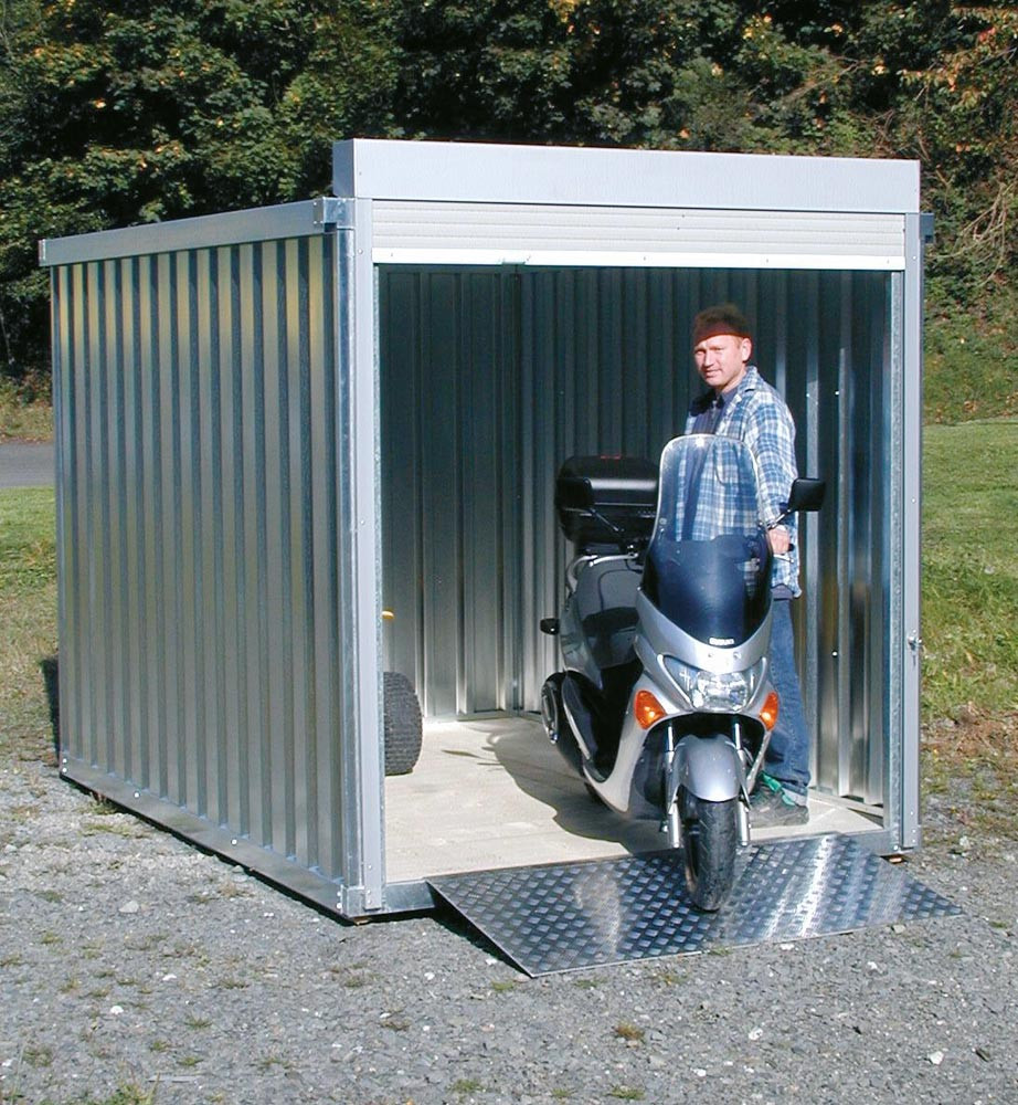∙ Als Materiallager und zur Mülltonnenunterbringung (geeignet für 3 Stück 120/240 l Mülltonnen) ∙ Platzsparend durch Rollladen anstelle Türen ∙ Vielfältiges Zubehör ∙ Optionales Elektroinstallationspaket für Beleuchtung ∙ Sicherungskasten bei Verwendung mehrerer Stromkreise empfohlen ∙ CE-Kennzeichnung mit Leistungserklärung für Standsicherheitsnachweis nach Eurocode 3