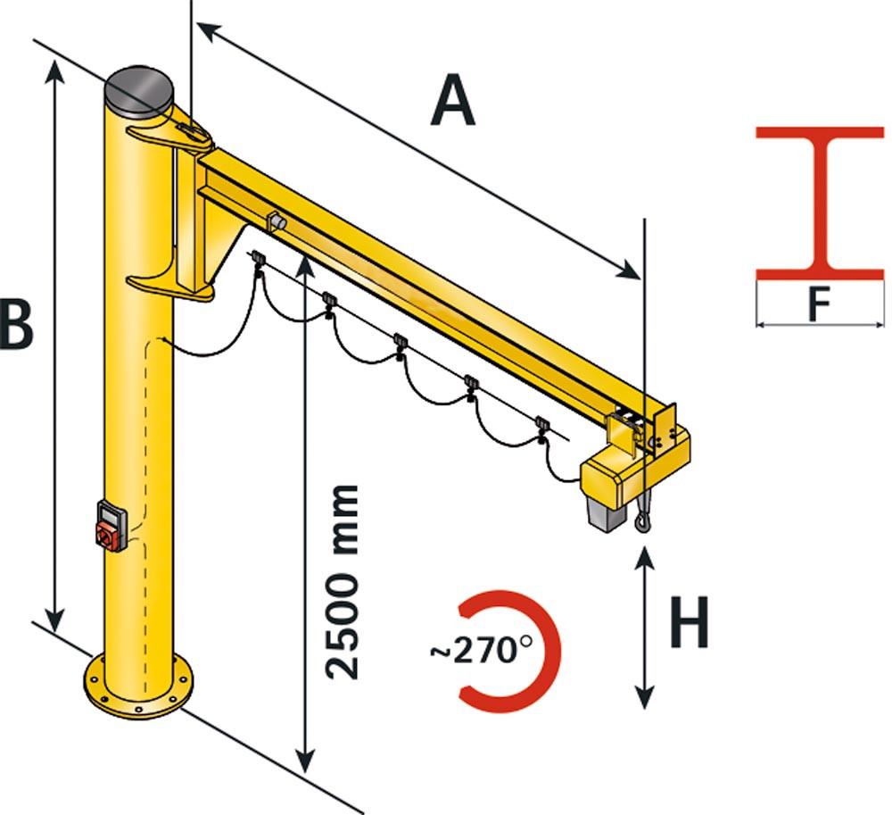 Säulenschwenkkran, ohne Elektrokettenzug, Traglast 125 kg, Schwenkbereich 270 Grad, Ausladung 5000 mm, Bauhöhe 2790 mm EP515449
