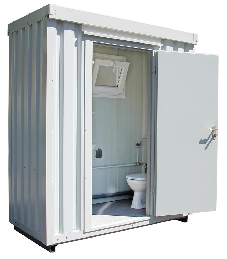 Sanitärcontainer, BxTxH 2100x1140x2490 mm, WC, Waschbecken, Bodenbelastung 500 kg/qm, RAL 9002 grauweiß