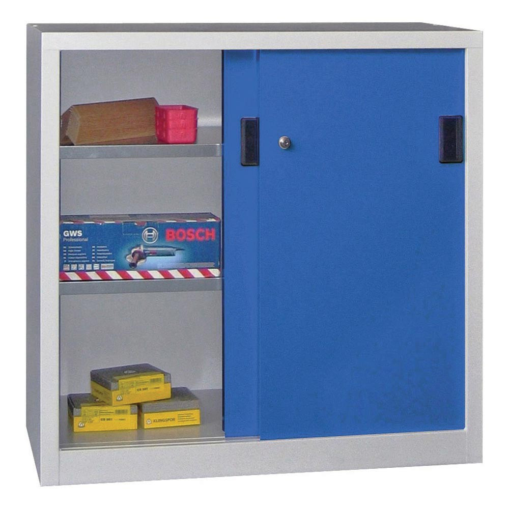 Schiebetürenschrank, Vollblechtüren, 2 verzinkte Böden, ohne Trennwand, BxTxH 1000x600x1000 mm, RAL 5010