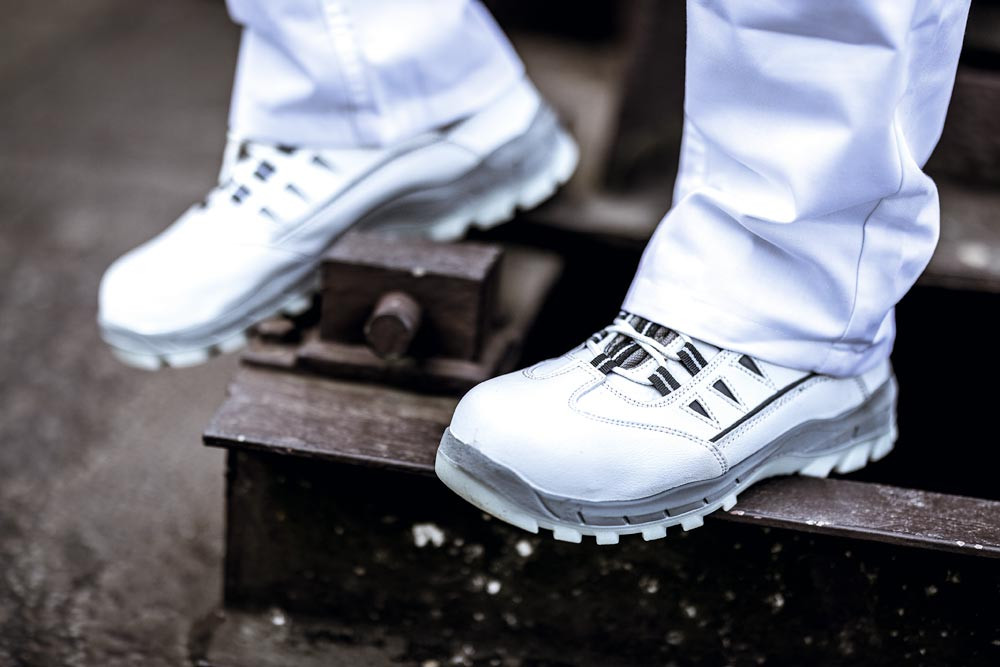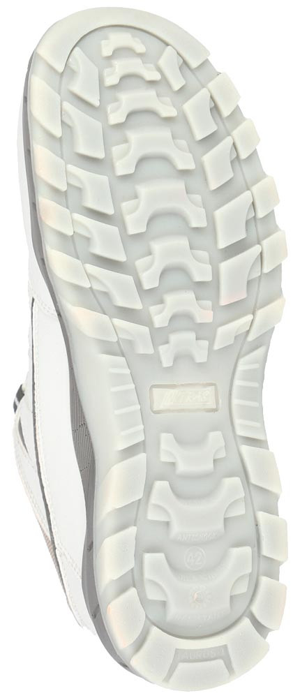 Nach EN ISO 20345, Sicherheitsklasse S3 SRC MF ∙ Zehenkappe aus Fiberglas ∙ Durchstichhemmende Zwischensohle aus Textil ∙ Obermaterial aus Kunstleder ∙ Widerstandsfähige und nicht kreidende PU/TPU-Laufsohle, grau/transparent ∙ Ergonomisch geformte Einlegesohle ∙ Fersenfutter für ein einfaches An- und Ausziehen sowie Fersenverstärkung aus robuster Mikrofaser ∙ Weite 11 ∙ ESD-fähigDGUV Regel 112-191-zertifiziertFarbe weiß