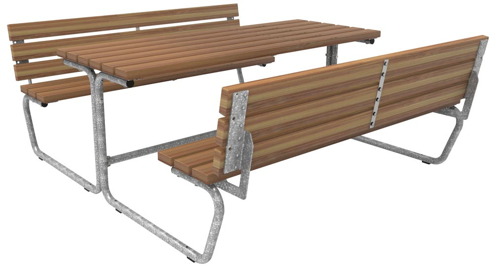 ∙ Stahlrohrrahmen feuerverzinkt ∙ Rohr-Ø 38 mm ∙ Sitz- und Tischfläche mit Bambusbelattung, Savanna ∙ B x H 1890 x 731 mm ∙ Sitzhöhe 431 mm ∙ Tisch B x T 1770 x 700 mm