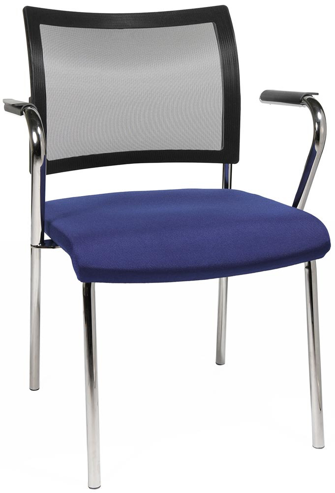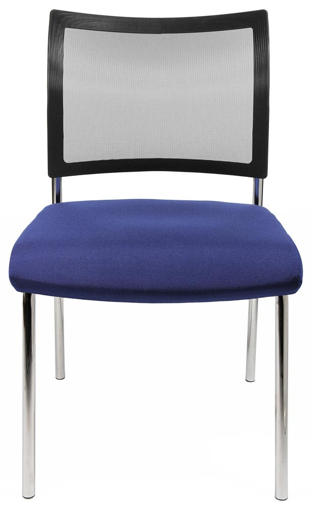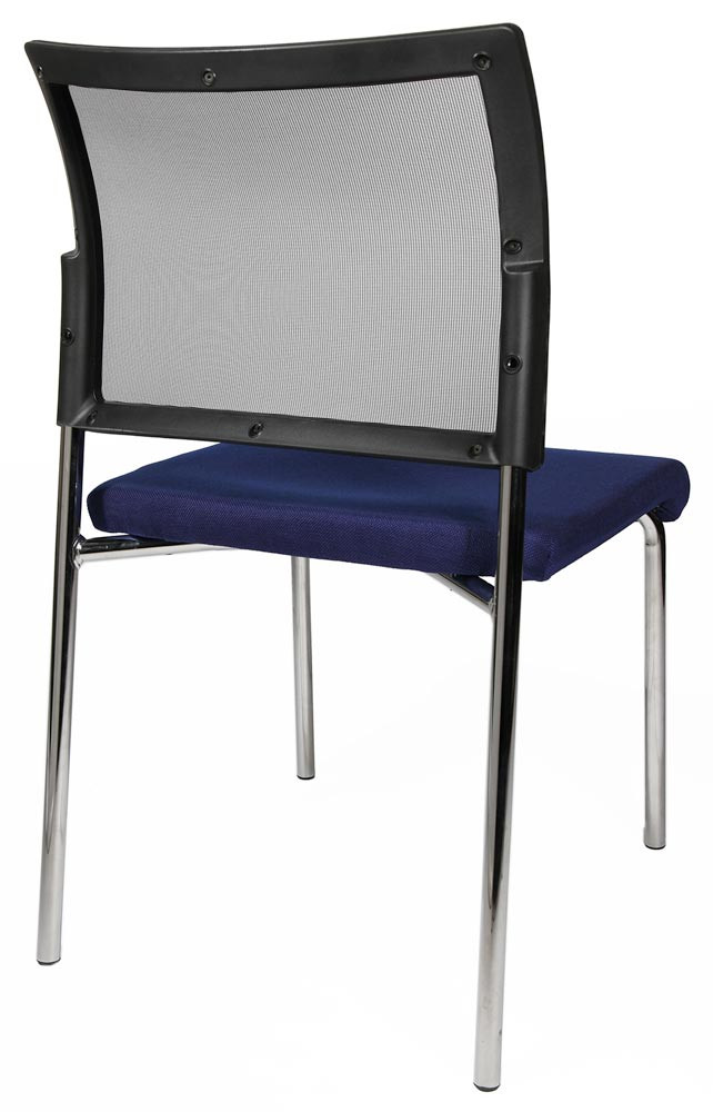 · Ergonomisch geformte Rückenlehne mit atmungsaktiver Netzbespannung und schwarzem Kunststoffrahmen · Bequem gepolsteter Muldensitz mit abgerundeter Vorderkante · Verchromtes Vierfußgestell aus Rundrohr Ø 22 mm · Kunststoff-Fußgleiter · Stapelbar bis zu 2 Stühlen · Armlehnen optional gegen Aufpreis lieferbar · VE 2 Stück