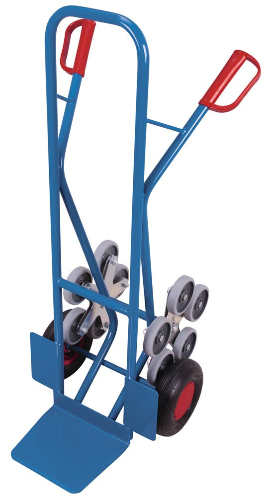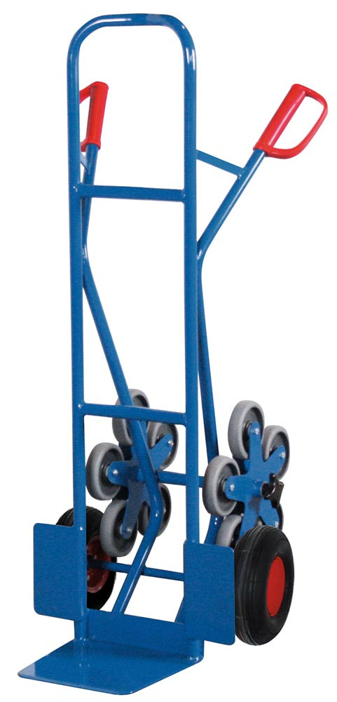 Treppenkarre, Schaufel-BxT 300x250 mm, BxTxH 570x531x1310 mm, Traglast 200 kg, 2 Räder Luftbereifung + 2 fünfarmige Radsterne Vollgummibereifung