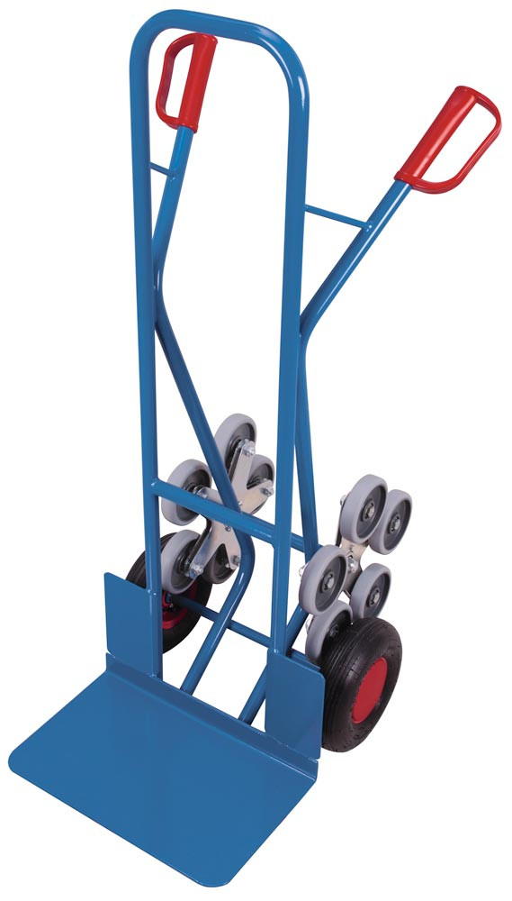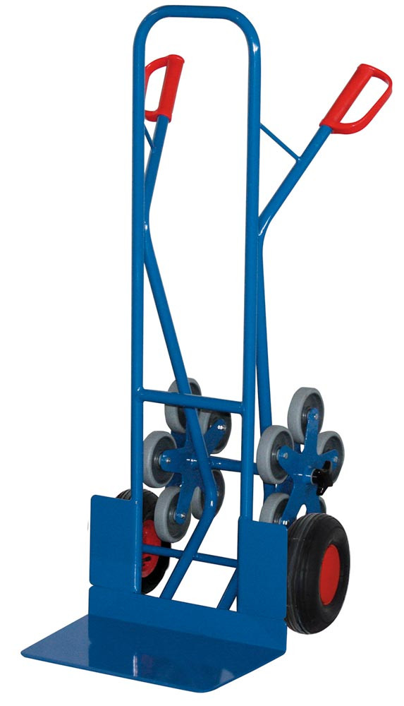 Treppenkarre, Schaufel-BxT 480x300 mm, BxTxH 570x580x1310 mm, Traglast 200 kg, 2 Räder Luftbereifung + 2 fünfarmige Radsterne Vollgummibereifung