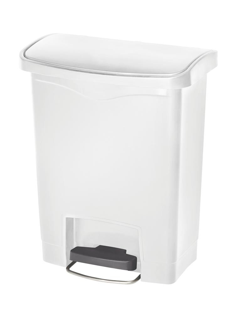 Tret-Abfallsammler, Kunststoff, Volumen 15 l, BxTxH 377x230x400 mm, Pedal an breiter Seite, weiß EP535386