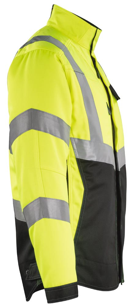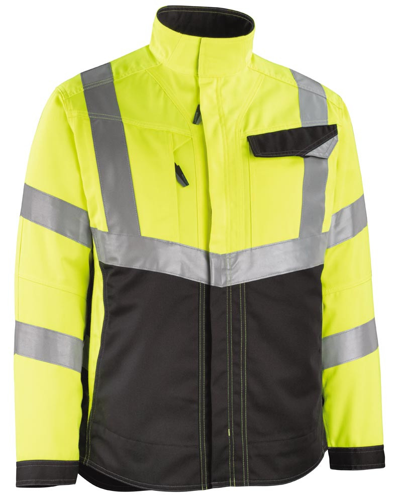 Nach EN ISO 20471 - Klasse 2 , Hi-Vis Gruppe A und ProWash® - EN ISO 15797 ∙ Aus 65% Polyester/35% Baumwolle, ca. 290 g/m2 ∙ Schmutzabweisende Teflon®-Beschichtung ∙ Keine Nähte auf der Schulter ∙ Platz für das nachträgliche Anbringen eines Wäsche-Chips ∙ Zusätzliche Reflexe auf dem Rücken für eine optimale Sichtbarkeit ∙ Stehkragen ∙ Zweifache Kappnähte an den Schultern, Ärmeln und an den Seiten ∙ Verschluss mit Reißverschluss und Wetterschutzleiste mit Druckknöpfen ∙ Rücken ist verlängert ∙ Brusttasche mit Reißverschluss, Patte und Druckknopf ∙ D-Ring ∙ Ergonomisch geschnittene Ärmel ermöglichen hohe Bewegungsfreiheit ∙ Vordertaschen ∙ Innentaschen ∙ Ventilation unter den Ärmeln ∙ Bund mit Druckknopfregulierung ∙ Manschetten mit Druckknöpfen ∙ Für Industriewäsche-Kategorie A2 geeignet ∙ Zertifiziert nach OEKO-TEX® Standard 100
