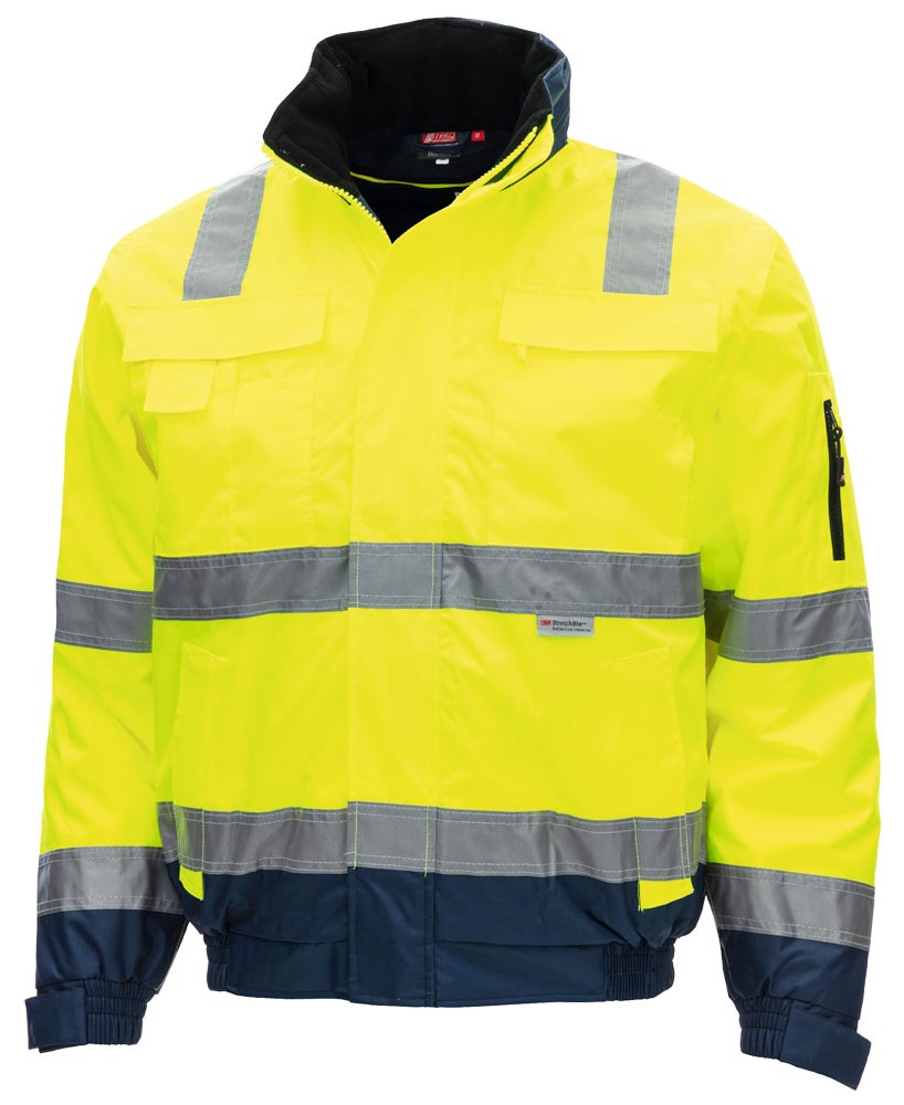 Premium-Pilotenjacke nach EN ISO 20471, Klasse 3 ∙ Aus 100 % Polyester, ca. 300 g/m2 ∙ Angenehmer Tragekomfort ∙ Mit verstellbaren Ärmelabschlüssen mit Klettverschluss und weichem Fleecekragen ∙ 4-in-1-Funktion (abnehmbare Ärmel und hochwertiges, herausnehmbares Polar-Fleece) ∙ Umlaufendes 3M Scotchlite™ Reflective Material für besonders gute Sichtbarkeit ∙ Durchgängiger und praktischer 2-Wege-Reißverschluss mit Windstopper außen ∙ Innenliegender Zugang am Rücken für Veredelungen ∙ Abnehmbare und ungefütterte Kapuze optional erhältlich ∙ Regular Fit