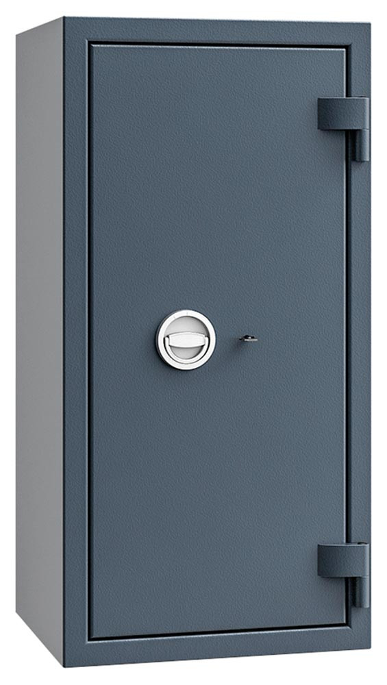 ∙ Leichte Ausführung mit Widerstandsgrad I nach EN 1143-1, ECB*S zertifiziert ∙ Hoher Einbruchschutz durch allseitig mehrwandigen Korpus und mehrwandige Tür, 80 mm stark ∙ Verankerung durch eine Bohrung am Boden vorbereitet ∙ Verriegelung erfolgt über ein Doppelbart-Hochsicherheitsschloss VDS-Klasse I mit 2 Schlüsseln ∙ Beschläge und Scharniere 50 mm vorstehend ∙ Hochwertige Feuerschutzisolierung ∙ Inkl. Verankerungsmaterial ∙ Lackierung RAL 7035 lichtgrau oder RAL 7024 graphitgrau